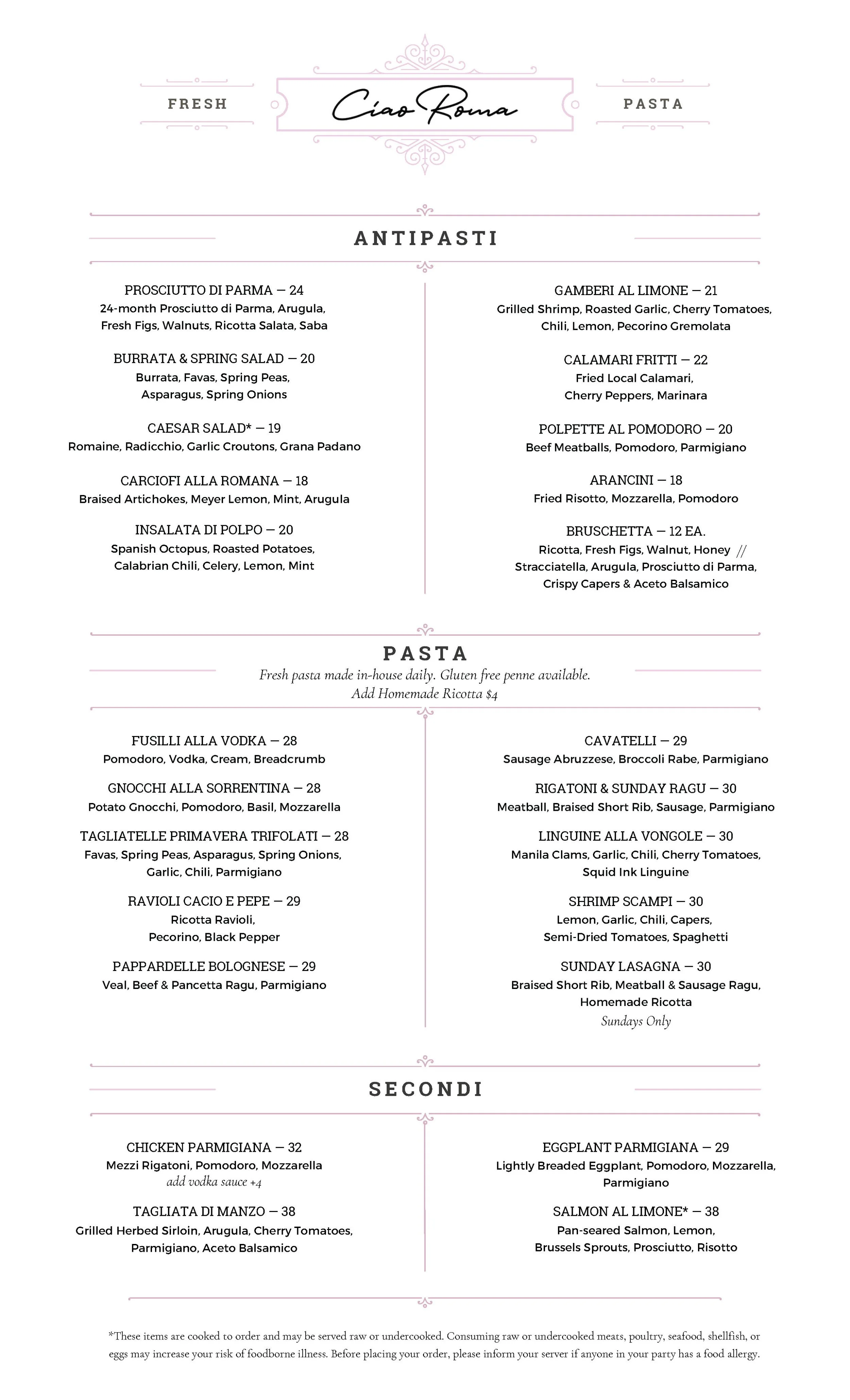 Ciao Roma is a Roman inspired Italian Restaurant in Boston’s historic North End, located on the Freedom Trail and overlooking the oldest public square in the country, North Square. We have the best al fresco setting in the city. We offer fresh homemade pasta, classic meat and seafood dishes, and a carefully chosen Italian wine list with a full bar. Please see below for menu and reservations.