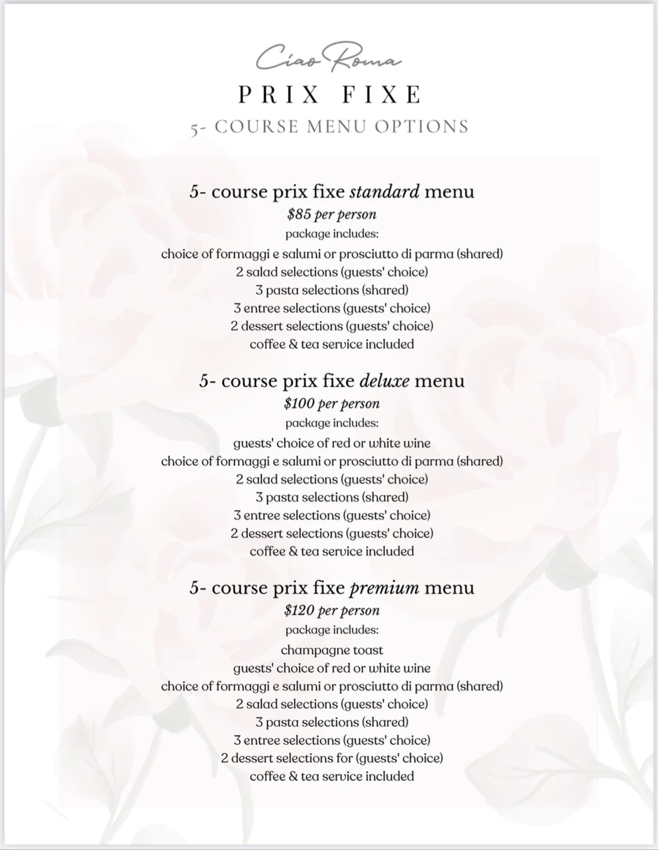 Please note these are sample menus subject to price change. Availability of items may change seasonally.